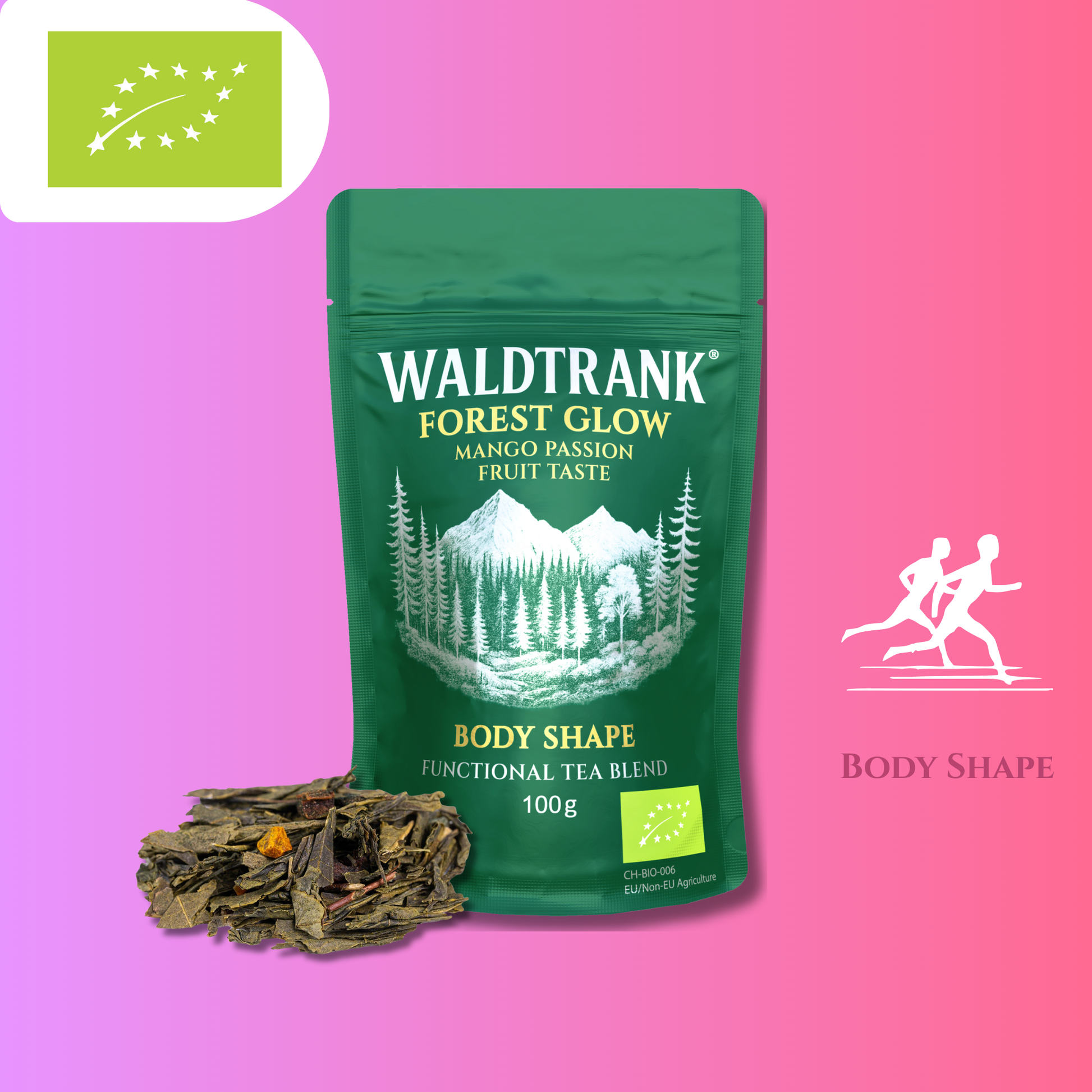WALDTRANK® Forest Glow invites you to start your day with a cup that feels bright and balanced. The organic blend of green tea, turmeric and ginger gives a gentle warmth while mango and passion fruit add a lively tropical note. You can taste natural freshness that makes each sip light and uplifting.